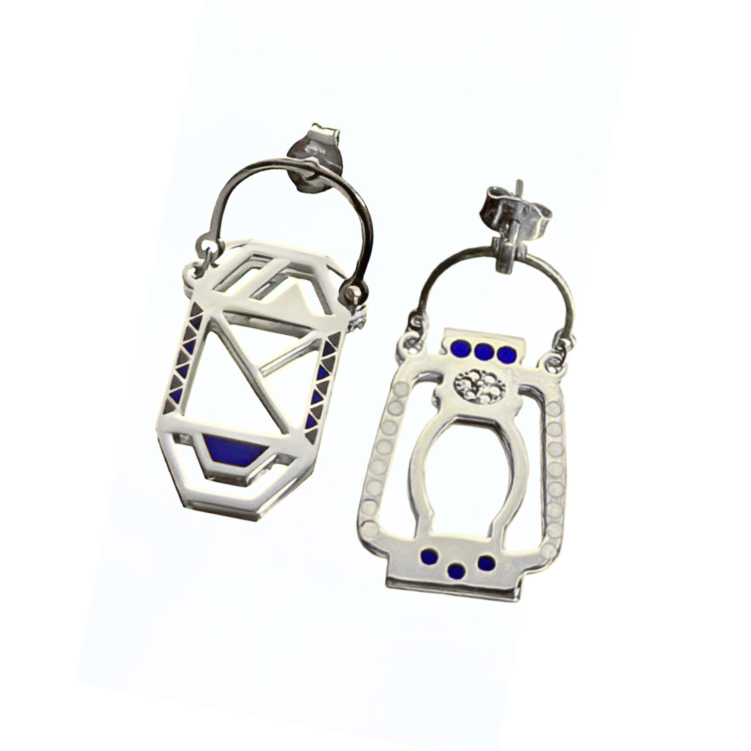بتأثير من التراث العربي، تمزج أقراط الفانوس الهندسية بين الماضي والحاضر من خلال خطوط هندسية وألوان المينا المتداخلة، والمستوحاة من العمارة العربية.